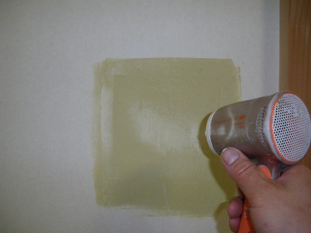 時間短縮のためにドライヤを使いパテを乾かしていきます。