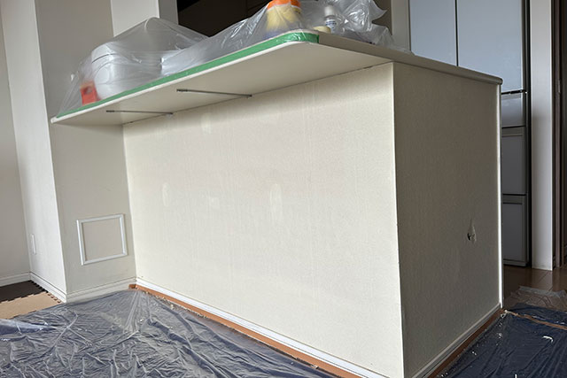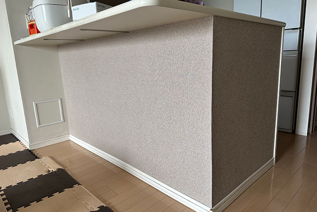 今回使用したアクセントクロスはサンゲツのZSB118で量産クロスで張り替えましたがカウンターの存在感がアップしてお客様にも大変喜んで頂けました。