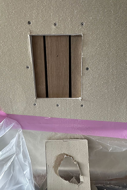 石膏ボードをはめ込んで固定したらパテ処理を今回は4回行います。